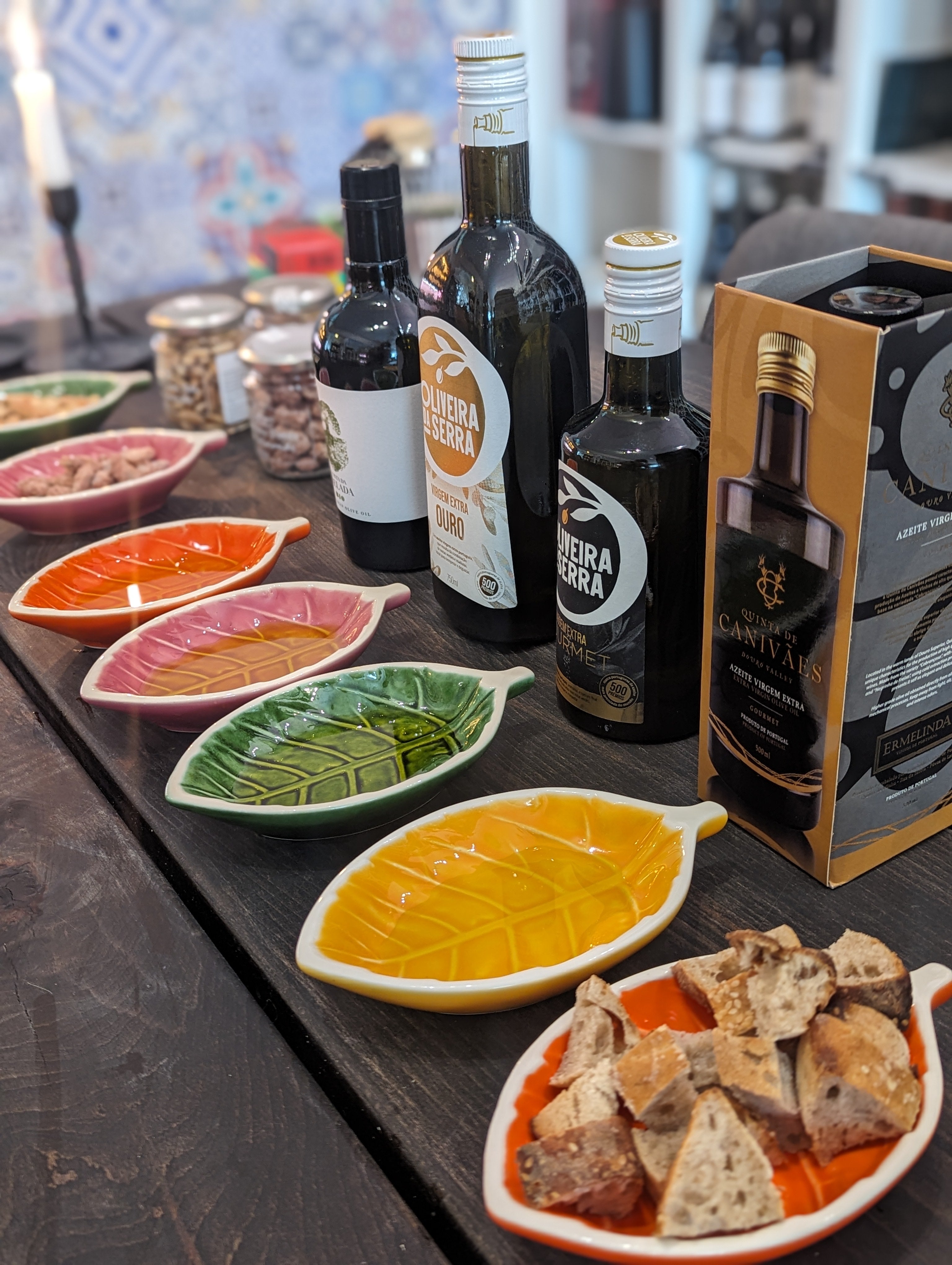 Vi har flere forskellige olivenolier. Alle sammen Koldpresset Ekstra Jomfru Olivenolie af høj kvalitet, produceret i Portugal.